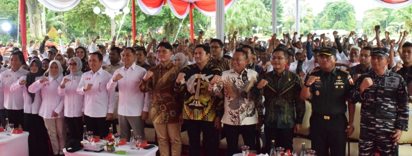 Penyerahan simbolis dilakukan oleh Ketua Umum Yayasan Gerakan Solidaritas Nasional Letjen Purn Dr Teguh Arief Indratmoko bersama Wali Kota Surabaya Eri Cahyadi dan disaksikan Forkopimda serta tamu undangan.