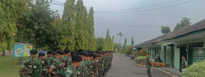 Sidoarjo,- Dankikav 3/TSC Kapten Kav Andrie R. Perkasa, S.T. Han., memimpin apel pemberangkatan cuti bersama Hari Raya Idul Fitri 1446 H / 2025 M yang digelar di Mako Kikav 3/TSC, Sidoarjo.