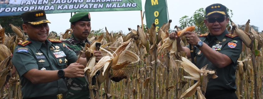 Danpusterad juga mengunjungi lokasi panen raya jagung di Desa Kemiri, Kecamatan Kepanjen. Di lokasi ini, Danpusterad bersama Forpimda Kabupaten Malang melakukan panen raya jagung secara simbolis.