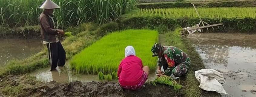 Danramil 0808/11: Babinsa Ujung Tombak dalam Mendukung Ketahanan Pangan Melalui Tanam Padi di Blitar