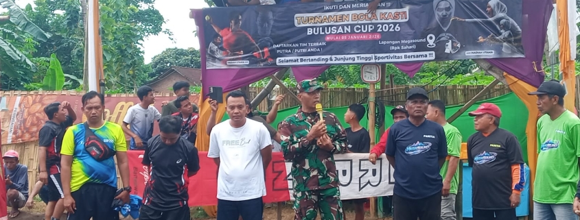 BANYUWANGI – Koramil 0825-21/Kalipuro menunjukkan dukungannya terhadap pengembangan olahraga lokal dengan menghadiri Open Turnamen Bola Kasti Bulusan Cup 2026 yang digelar di Lapangan Mega Sound, Kelurahan Bulusan, Kecamatan Kalipuro, Banyuwangi, pada Kamis (08/01/2026). Kegiatan ini berlangsung meriah dengan antusias masyarakat yang tinggi.
