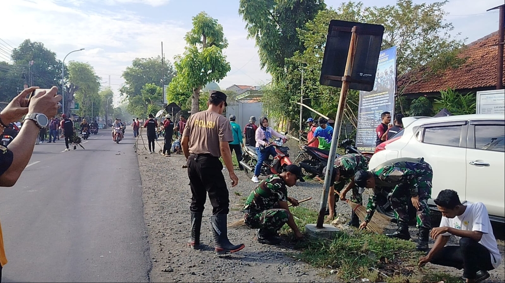 BANGKALAN – Kerja bakti massal digelar Koramil 0829-03/Kamal dipimpin Danramil Kapten Arm Muasari bersama lima anggota untuk mendukung program Pemerintah Kabupaten Bangkalan “Bangkalan Bershe Oungghu”, menampilkan kolaborasi aparat dan masyarakat dalam menjaga kebersihan wilayah sepanjang jalan raya Kamal.