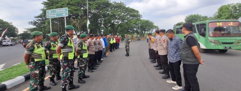 Tanggulangin,- Danramil 0816/06 Tanggulangin Kapten Arh Sudarsono, SH beserta jajaran Forkopimka melaksanakan kegiatan Apel Gabungan dalam rangka pengamanan menyambut malam tahun baru 2025 bertempat di Pos Pam Lantas bundaran ketapang Kec.Tanggulangin