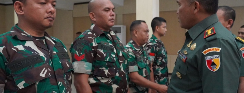 Madiun,- Danrem 081/DSJ, Kolonel Arm Untoro Hariyanto melepas anggota baru untuk masuk ke berbagai satuan di jajarannya, bertempat di Aula Jenderal Sudirman Makorem, Jl. Pahlawan No. 50 Kota Madiun, Rabu (19/3/2025). Kepada mereka yang mayoritas akan menjabat sebagai Babinsa, ia memerintahkan agar segera dapat menyesuaikan dengan tugas barunya.
