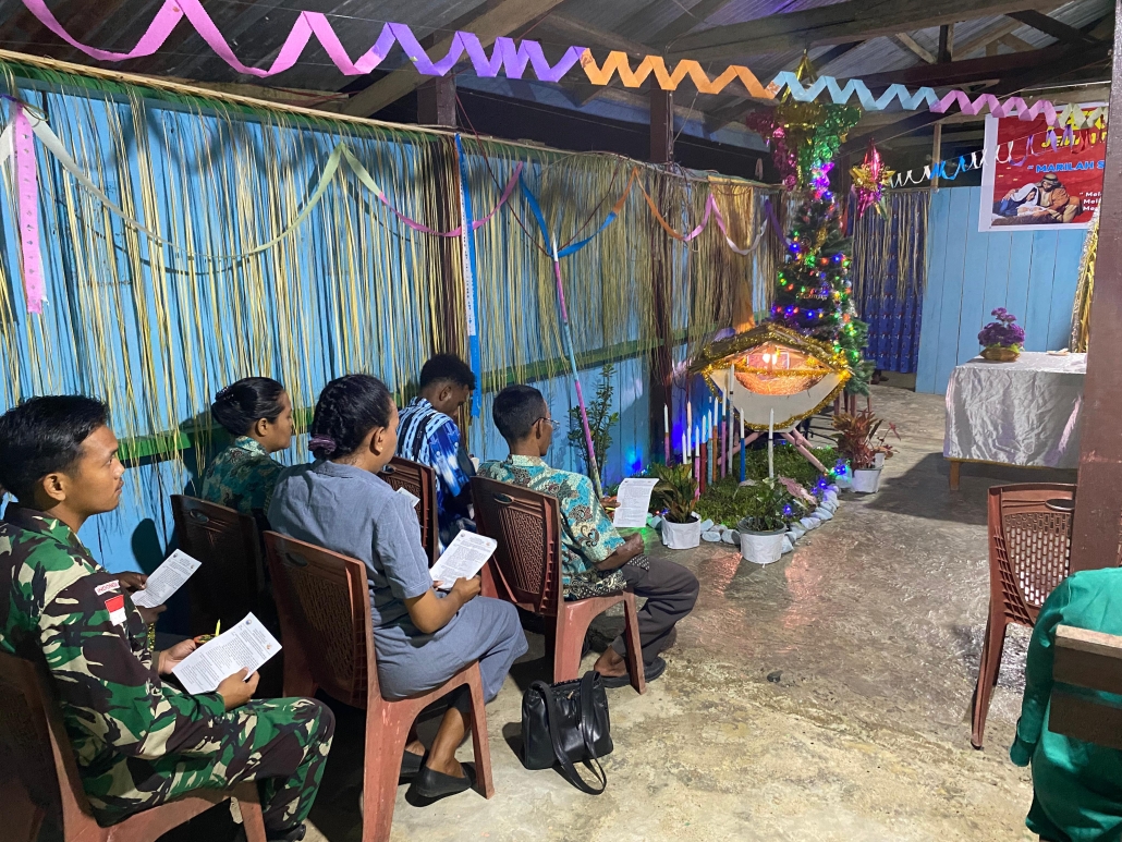 Keerom, Papua – Dalam rangka menyemarakkan masih dalam suasana Natal, Anggota Pos Kout Satgas Yonif 512/QY menunjukkan semangat persatuan dan toleransi dengan turut serta dalam doa bersama yang diadakan di beberapa gereja di Distrik Senggi. Kegiatan ini melibatkan seluruh elemen masyarakat setempat serta anggota TNI dari Pos Kout Satgas Yonif 512/QY sebagai bentuk dukungan terhadap kemaslahatan bersama. Sabtu, (28/12/2024).