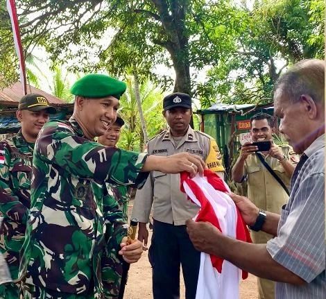 Merauke,- Demi meningkatkan semangat belajar anak-anak yang ada di perbatasan. Satgas Pamtas RI-PNG Statis Yonif 511/DY Pos Kondo yang dipimpin langsung oleh Dansatgas Yonif 511/DY Letkol Inf Rully Noriza, S.I.P., M.I.P., beserta anggota satgas lainnya memberikan bantuan berupa perlengkapan sekolah kepada siswa-siswi SD Inpres Kondo dan juga memberikan baju kaos kepada warga di Kampung Kondo, Distrik Naukenjerai, Kabupaten Merauke, Papua Selatan, Kamis (11/05/2023).