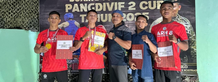 Pada kejuaraan tinju Piala Panglima Divisi 2 Kostrad kali ini, 2 petinju kebanggaan Batalyon Arhanud 8/MBC Prada Afrizal Gymnastiar berhasil meraih juara pertama di kelas 57 Kg, dan Pratu Hasudungan Simanulang juara pertama di kelas 60 Kg elite exhibition putra, yang digelar di Mako Divisi 2 Kostrad, Singasari, Malang. Selasa. 22-4-2025.