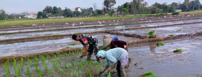 Dukung Ketahanan Pangan, Babinsa di Tulungagung Dampingi Petani Tanam Padi