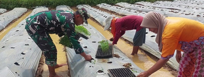 Pamekasan,– Dalam upaya mendukung ketahanan pangan dan meningkatkan kesejahteraan masyarakat, Babinsa Desa Palalang, Koptu Abd Kholik, aktif melakukan pendampingan kepada para petani cabai di wilayah binaannya. Salah satu kegiatan yang dilakukan adalah membantu penanaman bibit cabai di lahan milik Ruslan, seorang petani di Dusun Pandian, Desa Palalang, Kecamatan Pakong.