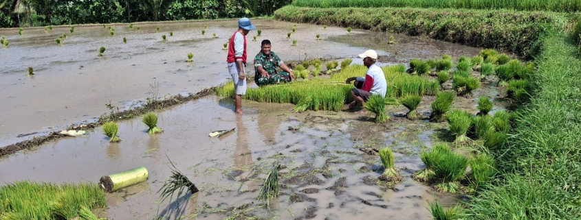 Bondowoso – Babinsa Desa Mandiro, Serka Thomas, bersama Petugas Penyuluh Lapangan (PPL) Desa Mandiro, Bapak Sampurno, melakukan pendampingan kepada petani di Dusun Karangasem, Desa Mandiro, Kecamatan Tegalampel, Kabupaten Bondowoso. Kegiatan ini merupakan bagian dari program ketahanan pangan, dengan fokus pencabutan bibit padi varietas Inpari 32 yang telah siap tanam di lahan milik Bapak Rulis dari Kelompok Tani Harapan III.