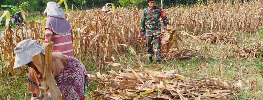 PAMEKASAN,– Sebagai bentuk dukungan terhadap kesejahteraan petani, Serda Abdus Salam, anggota Posramil 0826-12 Kadur, turut serta membantu panen jagung milik Jamaluddin di Dusun Ruberruh, Desa Kertagenah Tengah, Kecamatan Kadur.