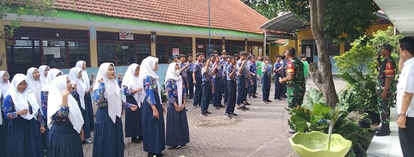 Sidoarjo – Dalam upaya membentuk karakter generasi muda yang disiplin dan memiliki kecintaan terhadap tanah air, Babinsa Koramil 0816/13 Wonoayu, Sertu Ariyanto, Pelda Samuri, dan Serka Wariyadi, memberikan materi Gerakan Disiplin Siswa (Gasing) kepada siswa SMP Dharma Wanita Persatuan 17 Wonoayu, Rabu (5/2/2025).