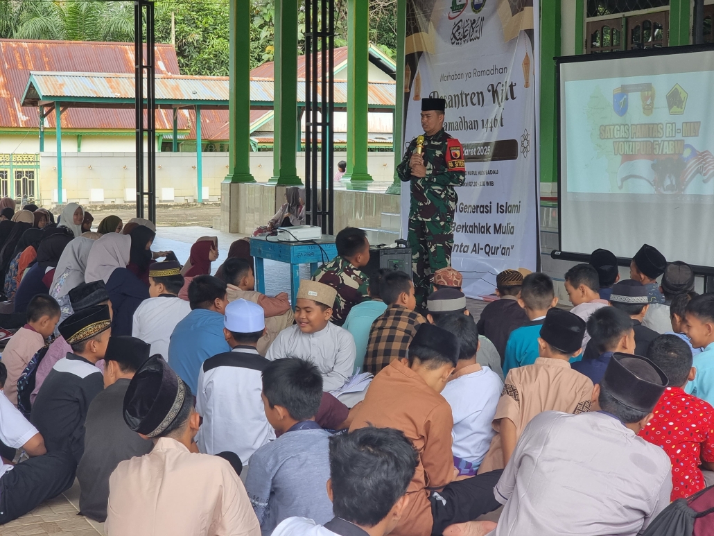 Kapuas Hulu,- Dalam rangka menyambut bulan suci Ramadan, Satgas Pamtas RI-Malaysia Yonzipur 5/ABW bersama dengan para Guru turut andil dalam kegiatan Pesantren Kilat untuk jenjang SD, SMP, dan SMA resmi dibuka dari tanggal 1 sampai 3 Maret 2025 di Masjid Besar “Nurul Hudud” di Desa Badau , Kecamatan Badau, Kabupaten Kapuas hulu, Minggu (02/03/2025).