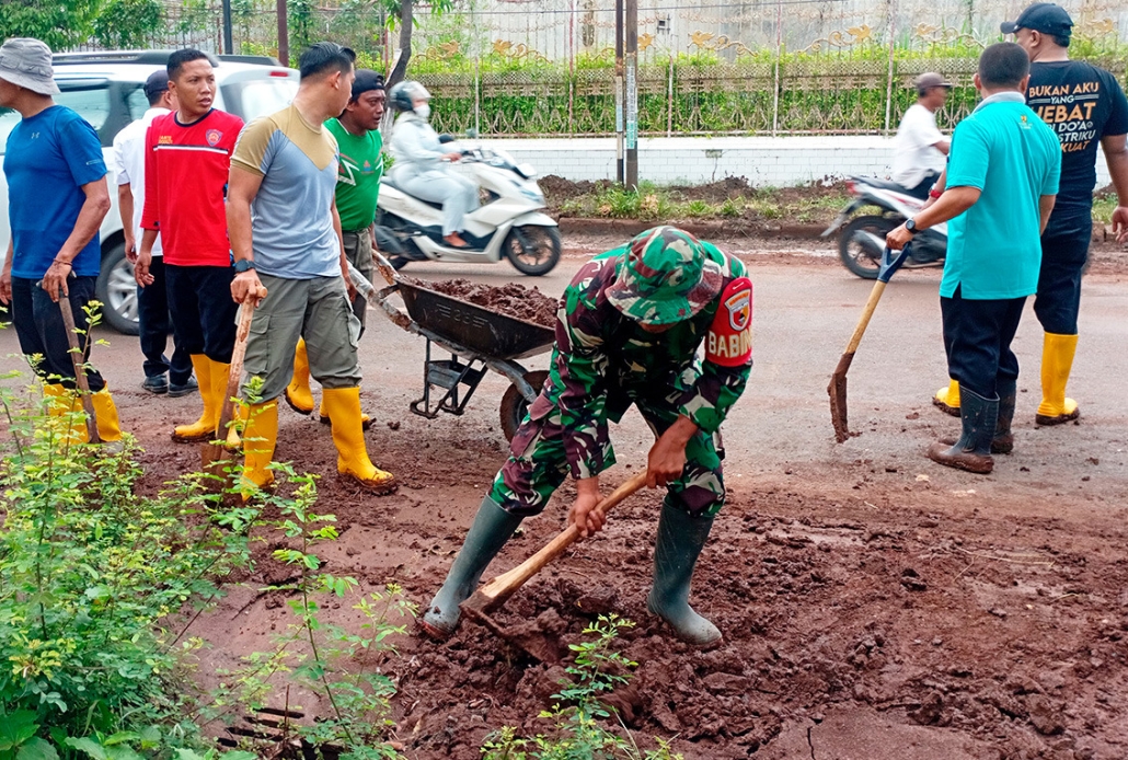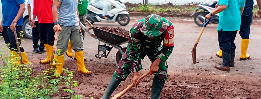Gotong Royong Babinsa dan Warga Membersihkan Jalan di Kecamatan Parengan Pasca Banjir