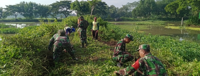 Gotong Royong TNI dan Masyarakat Bersihkan Embung Desa Semarum dengan Semangat