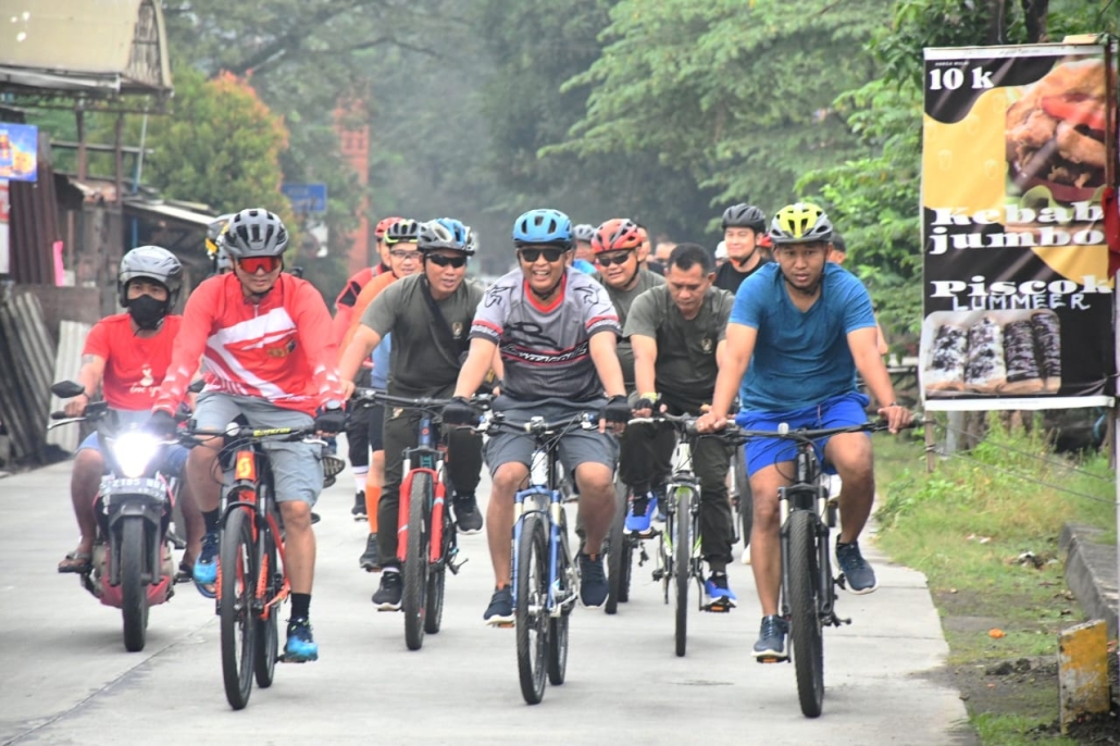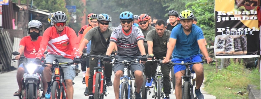 Mojokerto,- Dalam rangka mempererat sinergitas dan soliditas antara TNI dan Polri, Dandim 0815/Mojokerto Letkol Inf Rully Noriza, S.I.P., M.I.P., bersama Kapolres Mojokerto AKBP Dr. Ihram Kustarto, S.H., S.I.K., M.Si., M.H., dan Kapolres Mojokerto Kota AKBP Daniel S. Marunduri, S.I.K., M.H., melaksanakan kegiatan gowes bareng.