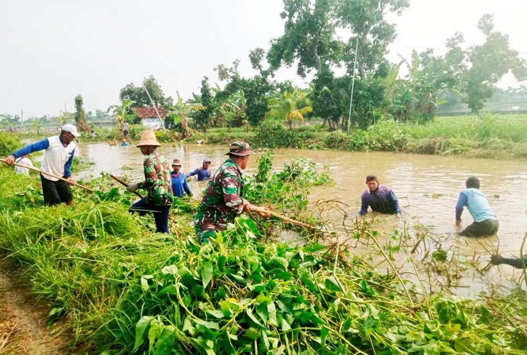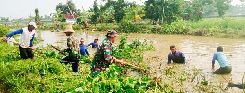 TUBAN, – Salah satu sistem drainase yaitu untuk mengaliri air menuju ke hilir guna mengantisipasi genangan air maupun banjir yang datangnya saat hujan, Babinsa dengan masyarakat di desa binaan, Koramil 0811/06 Plumpang karya bakti bersama warga Pokja Gabungan Hippa Se Kecamatan Plumpang dalam rangka pembersihan di sepanjang Kali Avour, Kecamatan Plumpang, Kabupaten Tuban.