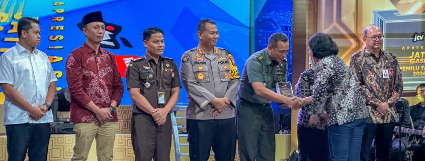 Surabaya,- Stasiun Televisi Jawa Timur atau JTV memberikan penghargaan kepada para penyelenggara pemilihan umum 2024 melalui siaran bertajuk Apresiasi Jatim Gaspol Pemilu 2024.