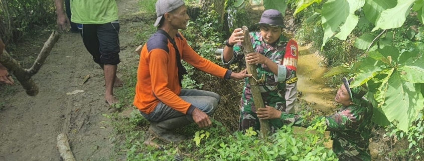 Karya Bakti Babinsa dan Masyarakat Cegah Longsor di Desa Tanggir, Bojonegoro