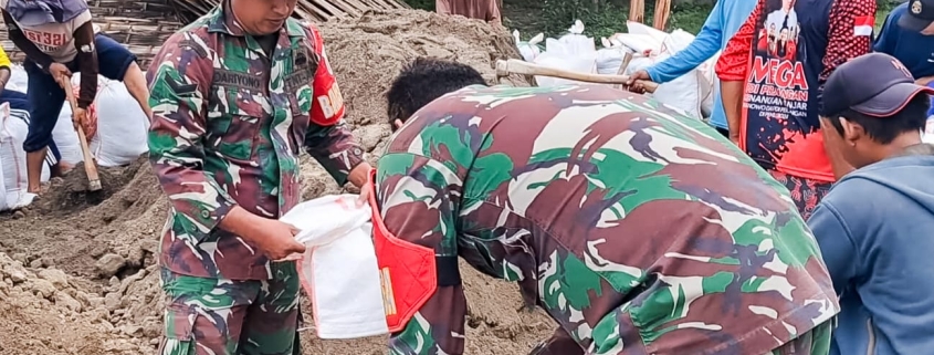 BOJONEGORO, – Komando Rayon Militer (Koramil) 20/Malo Kodim 0813 Bojonegoro menurunkan sejumlah anggota Bintara Pembina Desa atau Babinsa nya untuk membantu penanganan sisi jalan di Dusun Semanding RT. 009/RW. 002 Desa Kemiri Kecamatan Malo Kabupaten Bojonegoro yang rusak akibat bencana longsor beberapa hari yang lalu.