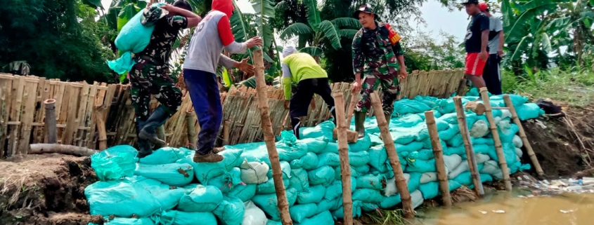 “Gerak cepat Babinsa bersama masyarakat perbaiki tanggul, agar segera dapat berfungsi dengan normal dan tertutup kembali, sehingga warga merasa aman tidak menggenangi area ladang persawahan”, Ungkap Danramil Kapten Inf Anang Susani.