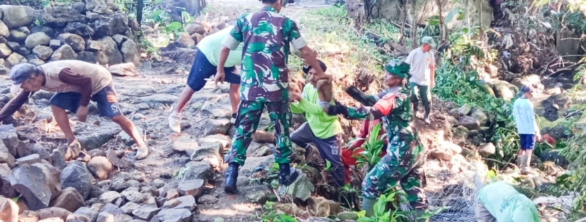 Karya Bakti Posramil Gondang: Membangun Jalan Makadam dan Bronjong untuk Cegah Erosi.