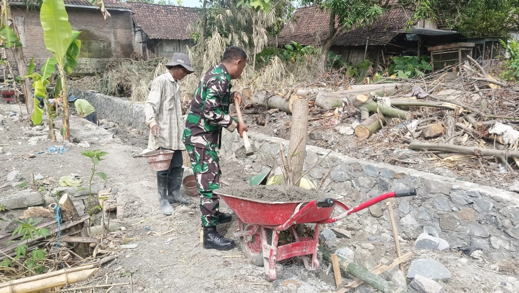 Dalam pelaksanaan karya bakti ini, Serda Suratmin bersama warga setempat bergotong-royong membangun talut sebagai penahan tanah di sepanjang saluran udara. Talut ini diharapkan dapat memperlancar aliran udara sekaligus menjaga kondisi lingkungan sekitar agar tetap aman dan nyaman bagi masyarakat.