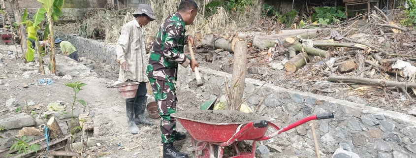 Madiun, – Serda Suratmin, Babinsa Desa Luworo dari Koramil 0803-10/Pilangkenceng, aktif melaksanakan kegiatan karya bakti pembuatan talut saluran air di Desa Luworo, Kecamatan Pilangkenceng, Kabupaten Madiun, Senin (14/7). Kegiatan ini bertujuan untuk meningkatkan sarana irigasi dan mencegah terjadinya erosi serta banjir di wilayah tersebut.