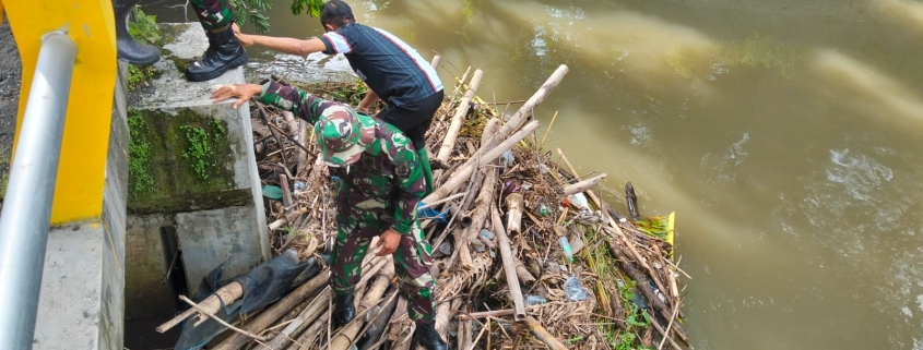 Jombang. Bertempat di kelurahan jombatan kecamatan Jombang kabupaten Jombang tepatnya di barat alun alun kabupaten Jombang berjarak -+ 300 meter sasaran karya Bhakti Koramil 0814/01 yang dipimpin Danramil 0814/01 Lettu Arh Hery Setiyawan sedang melaksanakan kegiatan karya bakti bersama forpimcam kecamatan jombang beserta lapisan masyarakat kelurahan jombatan dengan sasaran aliran sungai yang di fokuskan ke sampah sampah yang menyumbat di bawah jembatan karena sangat mengkhawatirkan apabila turun hujan deras bisa mengakibatkan penyumbatan aliran air sungai sehingga menganggu aliran sungai oleh karena itu yang di harapkan jembatan bersih tidak ada sampah atau ranting pohon yang menyangkut sehingga kalau air mengalir lancar. Jum’at 17/1/2025.