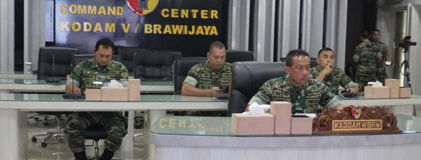 Surabaya,- Kasdam V/Brawijaya, Brigjen TNI Terry Tresna Purnama, S.I.Kom, M.M, mengikuti rakor pembentukan Satgas Gugus Tugas Kedaulatan Pangan TNI secara virtual dari ruang ruang Command Center Makodam V/Brawijaya, Surabaya, Jumat (25/07/2025).