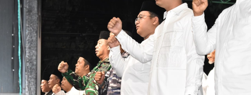 Acara berlanjut dengan pembacaan ikrar santri, resolusi jihad, serta lantunan sholawat dari Majelis Mahabbatun Nabi Banyuwangi yang menggema di langit malam. Doa dan lantunan sholawat yang mengalun lembut menutup kegiatan dengan suasana penuh kedamaian — meneguhkan tekad seluruh elemen bangsa bahwa santri, ulama, dan TNI akan terus berpadu menjaga keutuhan dan kehormatan negeri.