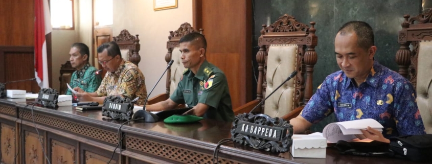 Tulungagung – Kepala Staf Kodim 0807 Tulungagung Mayor Arh Untung Wiyono menghadiri Rapat Koordinasi terkait Pelaksanaan Tentara Manunggal Membangun Desa (TMMD) ke-123 Tahun 2025 di Ruang Rapat Prajamukti, Sekretariat Daerah Kabupaten Tulungagung, Kamis (09/01/2025). Rapat ini dipimpin langsung oleh Sekretaris Daerah (Sekda) Tulungagung, Drs. Tri Hariadi, M.Si, dan dihadiri oleh sejumlah pejabat terkait.