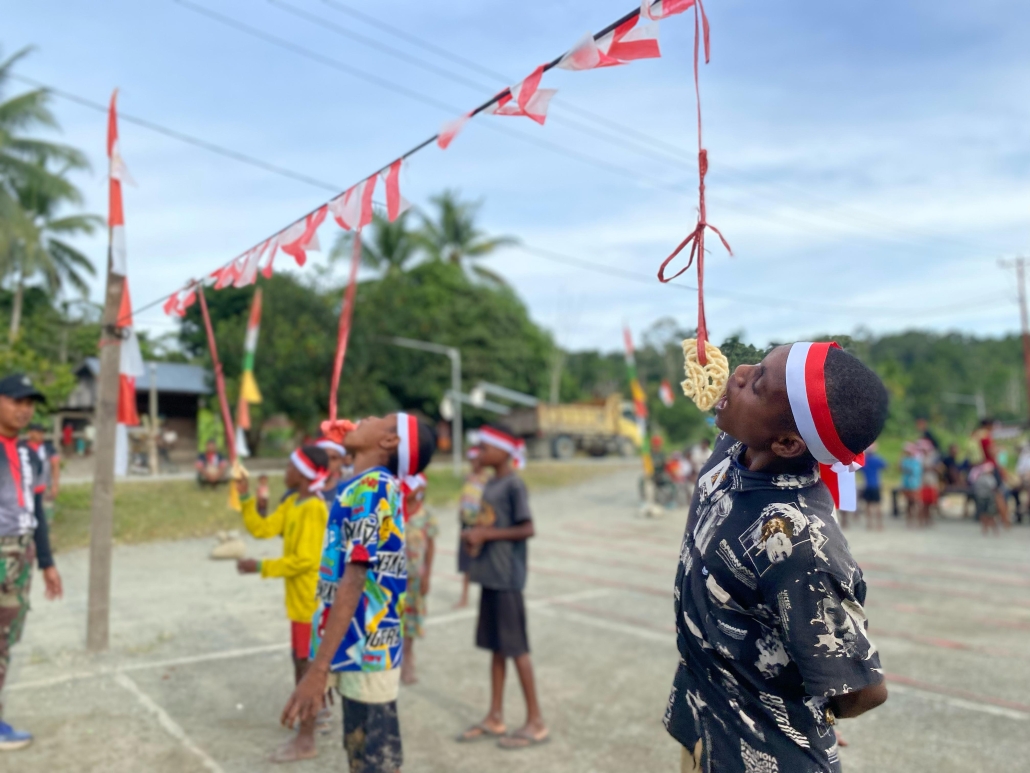 Berbagai perlombaan digelar, mulai dari lomba untuk anak-anak yang memancing tawa riang, hingga sorak-sorai dari para orang tua yang memberikan semangat tanpa henti. Teriakan dukungan, tepuk tangan, dan gelak tawa menjadi harmoni kebersamaan yang jarang dirasakan di kampung perbatasan ini.