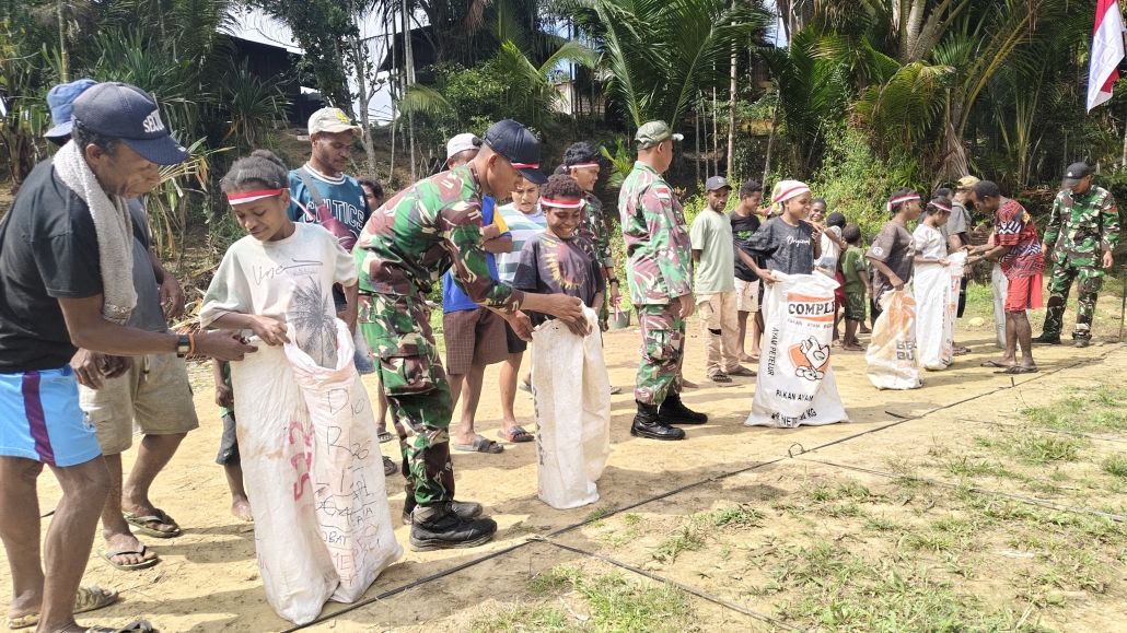 Kebersamaan dan Kegembiraan: Gebyar Kemerdekaan di Distrik Yaffi Bersama Satgas Yonif 512/QY.