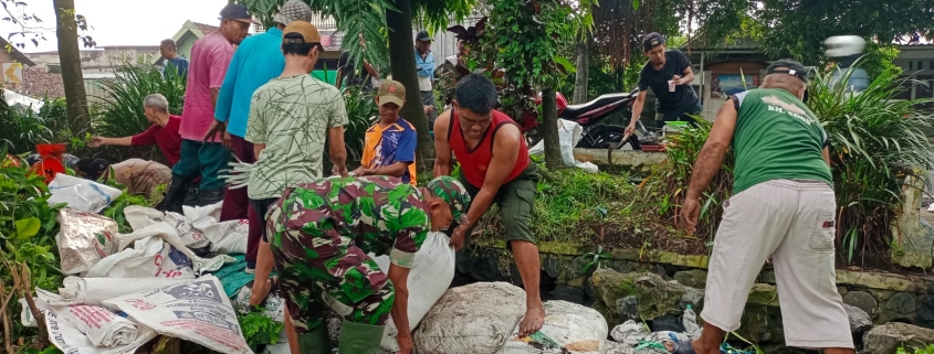 Jombang – Babinsa Koramil Kota bersama masyarakat setempat melaksanakan aksi bersih-bersih di sekitar Makoramil Kota, Kabupaten Jombang.