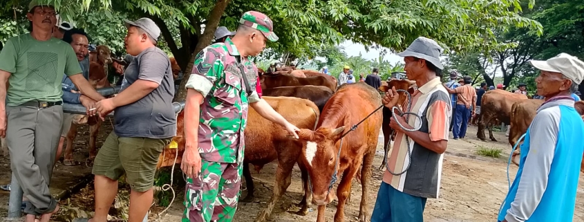 Gresik. — Dalam upaya mempererat hubungan dengan masyarakat sekaligus memastikan Hewan bebas dari penyakit mulut dan kuku (PMK), Babinsa Koramil 0817/09 Balongpanggang Serka Purwanto, melaksanakan anjangsana ke Pasar Hewan di Desa Balongpanggang, Kecamatan Balongpanggang, Kabupaten Gresik.