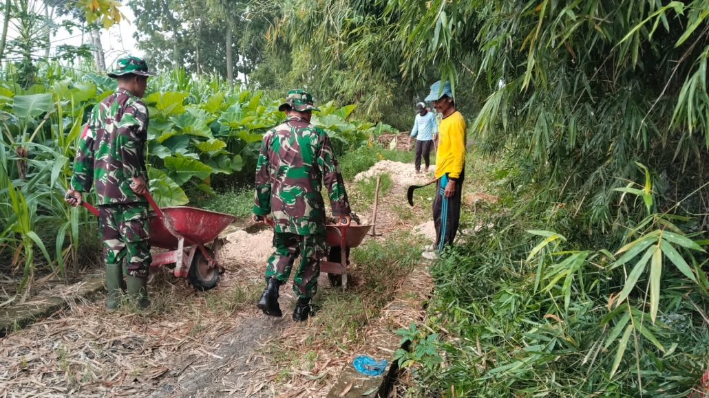 Batuud Koramil 0812/12 Peltu Sutomo yang hadir di lokasi karya bakti terlihat bahu membahu dengan Warga Desa. Dirinya menuturkan bahwa Babinsa akan selalu hadir di tengah Warga binaannya.