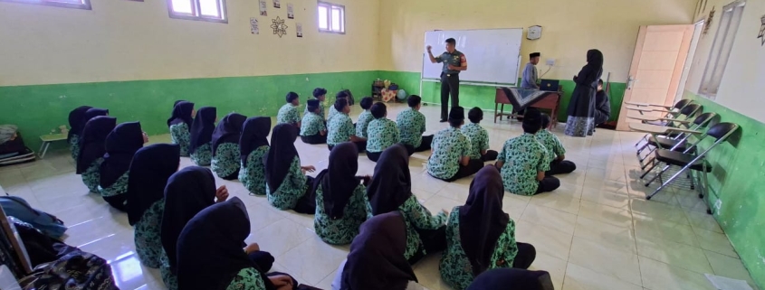 Banyuwangi,– Babinsa Koramil 0825/05 Kalibaru, Serka Bambang Heri Mawoto, hari ini memberikan materi pembekalan mengenai pencegahan kenakalan remaja dan bahaya narkoba kepada siswa-siswi MTs Miftahul Jadid. Kegiatan yang berlangsung di aula sekolah tersebut dimulai pukul 07.00 WIB dan berjalan lancar hingga selesai.