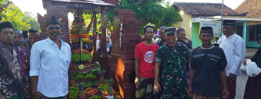 Probolinggo, Danramil 0820/13 Krejengan Kapten Inf Miko Supriyadi beserta anggota turunh lansung untuk mengawal dan mengamankan pelaksanaan selamatan desa (Kadisah) yang digelar oleh Pemerintah Desa Krejengan, Kecamatan Krejengan, Kabupaten Probolinggo, Sabtu (28/6).