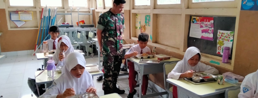 Sertu David Susilo hadir sejak pagi untuk memastikan kegiatan berjalan lancar. Dengan sabar, ia mengawasi proses distribusi makanan bergizi kepada para siswa. Menu yang disajikan terdiri dari makanan sehat dan seimbang, seperti nasi, sayur, lauk pauk, dan buah-buahan. Selain memastikan makanan tersedia dengan baik, Sertu David juga berinteraksi dengan para siswa, memberikan motivasi tentang pentingnya mengonsumsi makanan bergizi untuk tumbuh kembang yang optimal.