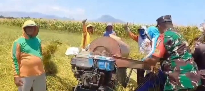 Kehadiran Babinsa di Tengah Petani: Serda Joko Santoso Dampingi Panen Padi di Desa Olean