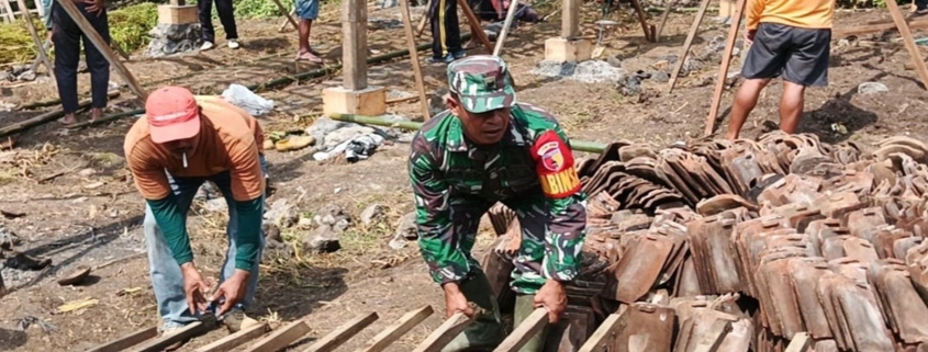 Blitar- Babinsa Desa Margomulyo Koramil 0808/18 Panggungrejo Kodim 0808 Blitar, Sertu Harno bersama masyarakat melaksanakan kegiatan gotong royong pemindahan rumah milik Ibu Sumini (56 tahun) yang berlokasi di Dusun Rampalombo RT 02 RW 05 Desa Margomulyo, Kecamatan Panggungrejo, Kabupaten Blitar, Minggu (29/6/2026).