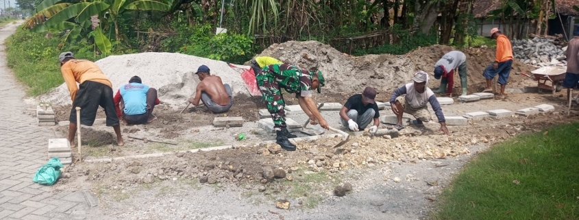 Madiun, – Serka Kusbianto, Babinsa Desa Pulerejo dari Koramil 0803-10/Pilangkenceng, ikut berpartisipasi aktif dalam kegiatan pemasangan paving jalan di Dusun Panjen, Desa Pulerejo, Kecamatan Pilangkenceng, Kabupaten Madiun, Sabtu (14/6).