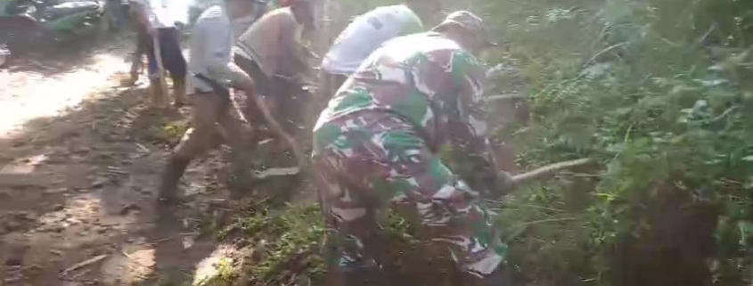 Kemanunggalan TNI dan Rakyat: Kerja Bakti Bersihkan Jalan di Desa Kalianan, Krucil