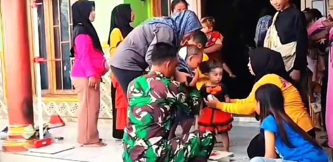 Kemanunggalan TNI-Rakyat: Babinsa Situbondo Dampingi Posyandu Pastikan Tumbuh Kembang Balita.