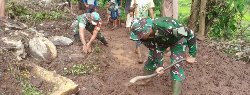 SITUBONDO– Semangat gotong royong kembali ditunjukkan oleh Babinsa Koramil 0823/14 Jatibanteng Sertu Karel Loppo bersama perangkat desa dan masyarakat dalam aksi kerja bakti membersihkan jalan alternatif yang menghubungkan Dusun Krajan, Desa Patemon, menuju Desa Wringinanom, Kecamatan Jatibanteng, Kabupaten Situbondo.