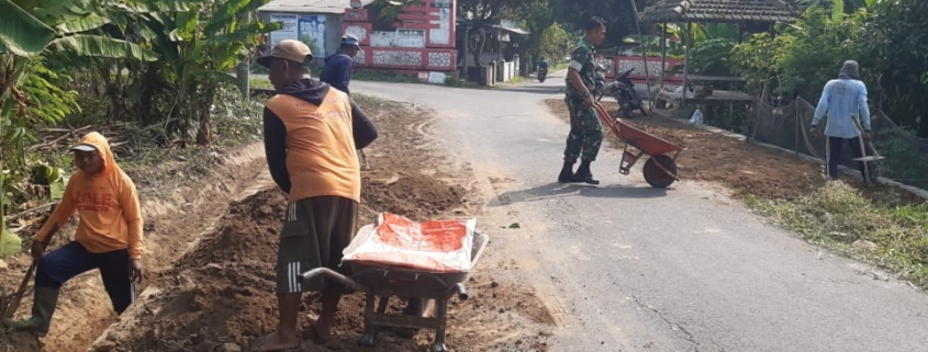 Jombang – Babinsa Gempolegundi Sertu Edi Santoso laksanakan kerja bhakti dengan segenap warga Dusun Legundi Desa Gempolegundi Kecamatan Gudo.