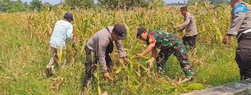 Sampang,– Babinsa Koramil 0828/09 Banyuates, Sertu Agung dan masyarakat setempat bersama-sama melaksanakan kegiatan panen jagung di Desa Masaran, Kecamatan Banyuates, Kabupaten Sampang, Madura.