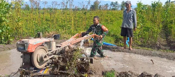 Ketahanan Pangan: Babinsa Koncer Kidul Bantu Petani Persiapkan Lahan Tanam Padi.