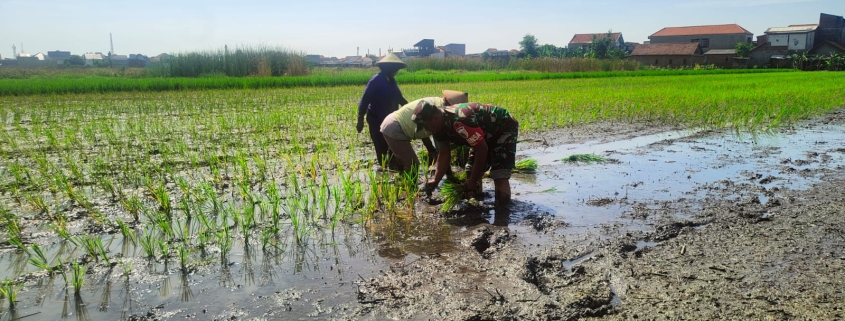 Sidoarjo, – Komitmen TNI AD dalam mendukung ketahanan pangan nasional terus digelorakan melalui aksi nyata di lapangan. Salah satunya dilakukan oleh Babinsa Koramil 0816/16 Waru, Pelda Puji Suyanto, yang dengan penuh semangat turun langsung ke sawah untuk mendampingi para petani dari Kelompok Tani (Poktan) Karya Tani dalam kegiatan tanam padi.
